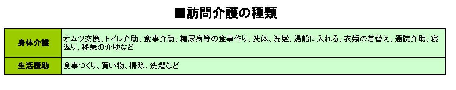 要介護度別、身体状態の目安と利用できる在宅サービス例と訪問介護の種類